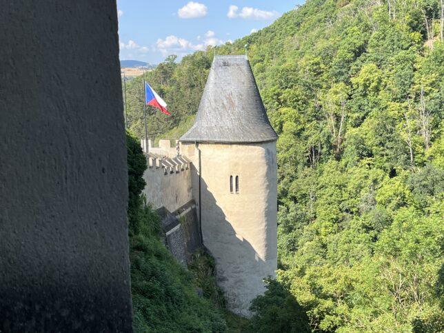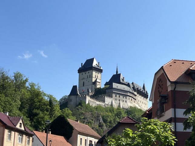 プラハから南西へ向かって車で30分程度の場所にカルルシュテイン城があります。場所は「Karlštejn 172, 267 18 Karlštejn」で観光地としても人気がるそうです。建設年は1348年、建物はゴシック様式です。神聖ローマ帝国の宝物を保管するための要塞だったそうです。中の見学はツアーでしか入れないので今回は外から見るだけにしなりました。