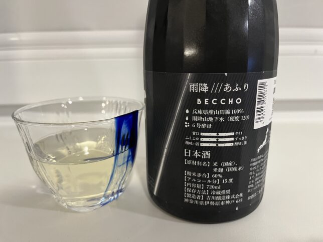 ドイツではたまに日本酒を出張販売する店もあり今回はその一つをいただきました。ラベルを見ると精米歩合 60%、 アルコール 15度の純米酒となります。雨降は、神奈川県伊勢原市の吉川醸造が 2021年に立ち上げた新ブランドとのこと。純米酒ですが意外とあっさりしており飲みやすい日本酒です。